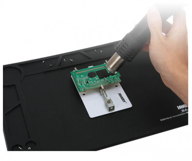 Covor antistatic service electronice din silicon (390mm X 270mm X 6 mm, MAX. 500°C) – Compatibil